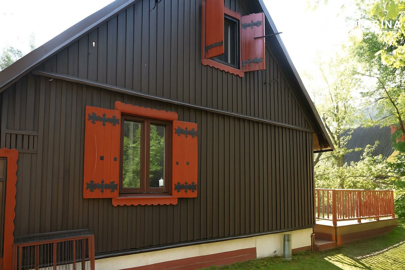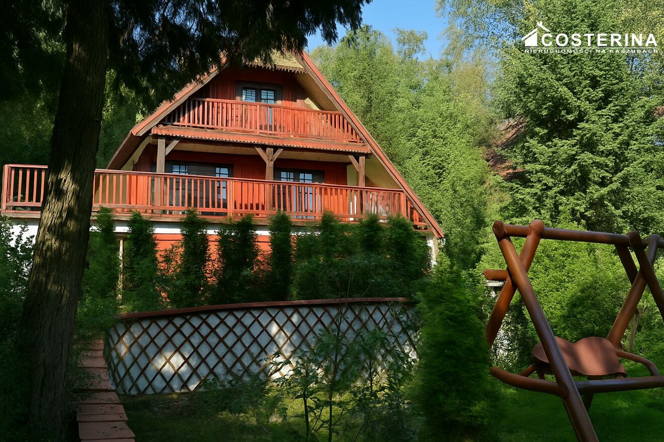 Z zewnątrz dom zachwyca architekturą typową dla kaszubskich siedlisk drewniane balustrady, okiennice i ozdobne detale pod dachem przywołują klimat dawnych willi letniskowych. Solidna konstrukcja łączy elementy murowane i drewniane, dzięki czemu budynek jest trwały, a jednocześnie przytulny i naturalny. Wnętrza domu urzekają ciepłem i harmonią drewniane podłogi, jasne ściany i naturalne światło tworzą wyjątkowo przyjemną atmosferę. Nowoczesna kuchnia w rustykalnym stylu z kominkiem to serce domu idealne miejsce do wspólnych spotkań, gotowania i rozmów przy ogniu. Szeroki taras i balkon otaczające dom zapewniają przestrzeń do odpoczynku o każdej porze dnia poranna kawa wśród śpiewu ptaków czy wieczorny zachód słońca nad drzewami to codzienność w tym miejscu.